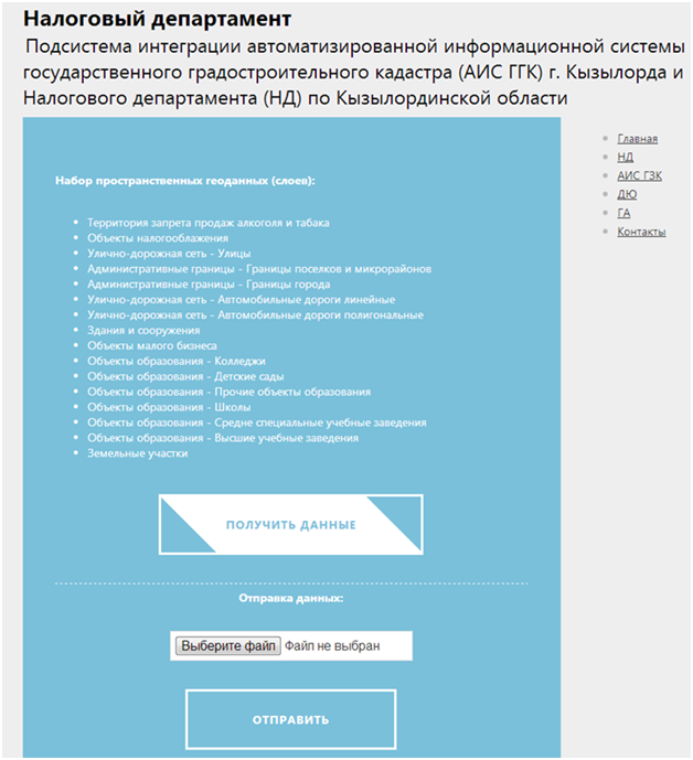 The following information systems send and receive data: The Tax Department, AIS UPLC, The Department of Architecture and Urban Planning.