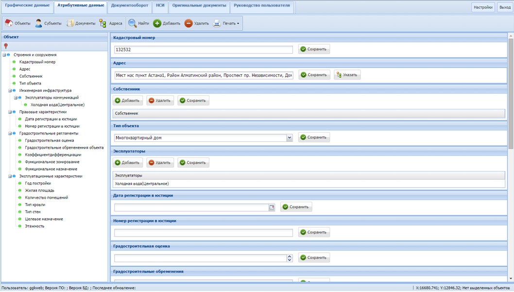 – инструмент позволяет получить ГИС-сведения об объекте, выполнить привязку графического объекта с атрибутивными данными, экспортировать графические данные объекта, загрузить файл и документы объекта, выполнить поиск относительно объекта.