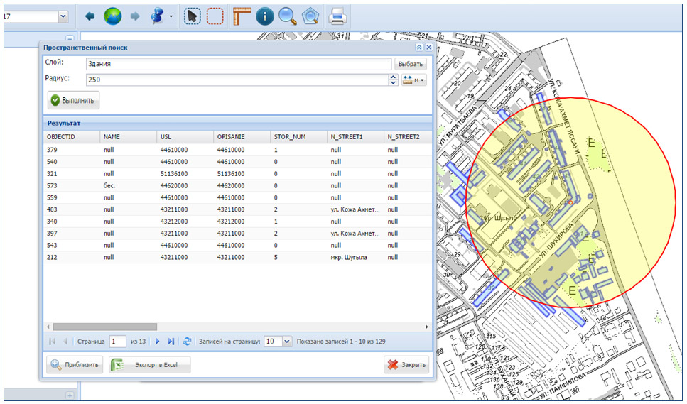 Рисунок 7 – Пространственный поиск объектов в заданном радиусе