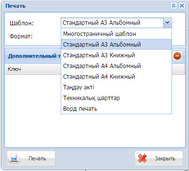 Система позволяет в процессе работы выбрать либо стандартный шаблон печати, либо подготовить необходимый шаблон для печати документов и распечатать необходимый документ