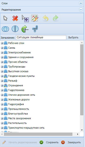 Панель инструментов для редактирования позволяет создавать новые объекты на карте и редактировать уже существующие объекты (Рисунок 3).